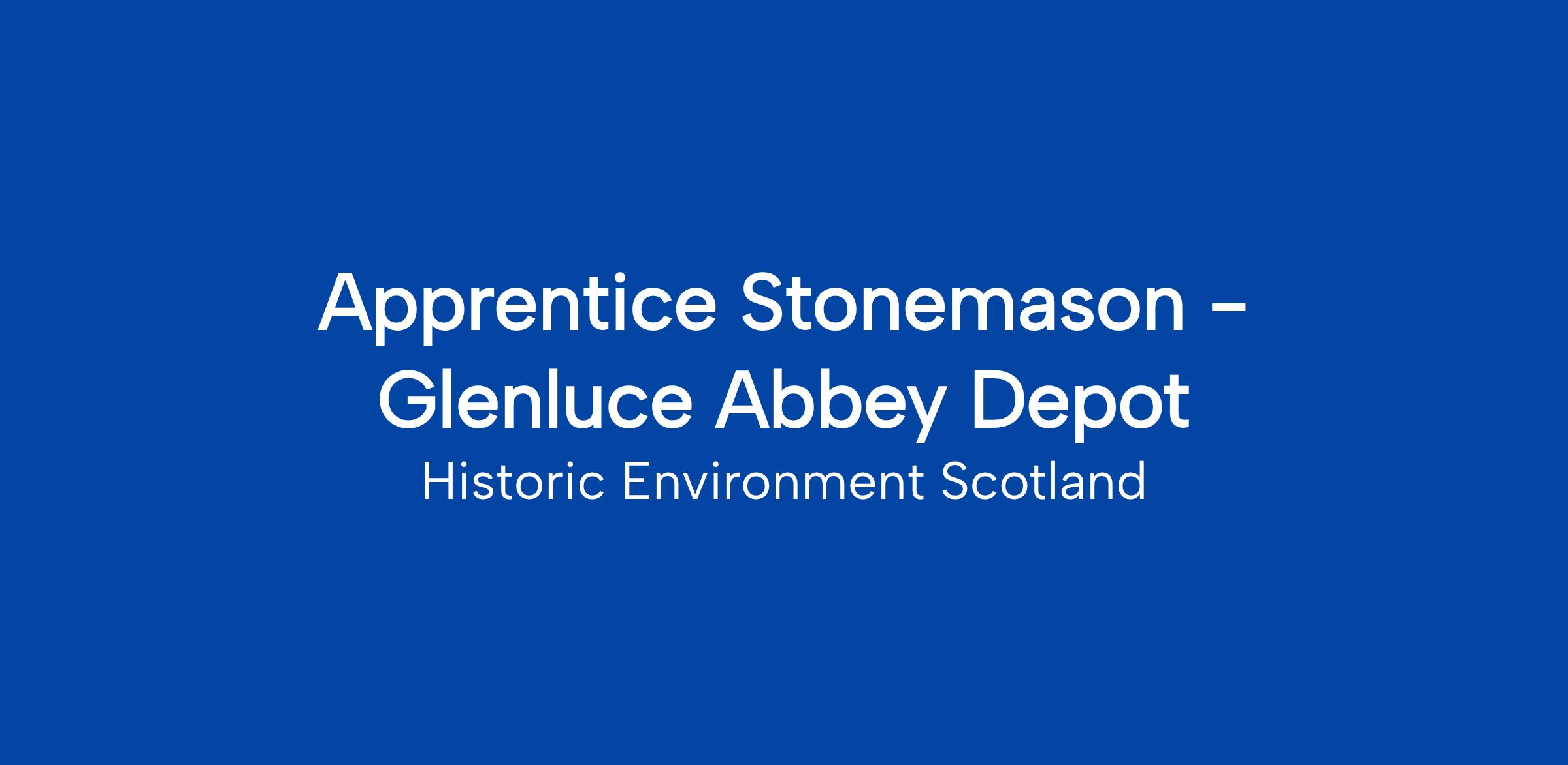 Thank you for your interest in the post of Apprentice Stonemason with Historic Environment Scotland that will be based at Glenluce Monument Conservation Unit depot. This is a 4 year fixed term appointment. While open to all applicants, we would welcome applications from school leavers and young persons.